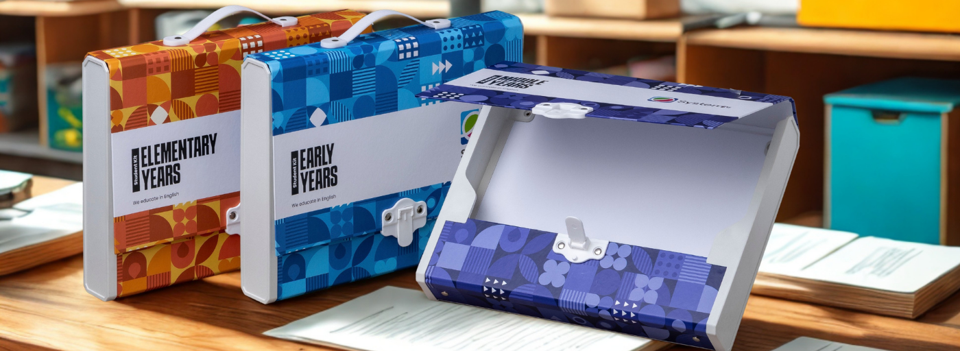Foi criado um sistema exclusivo de montagem, atualmente com pedido de patente, que fixa as laterais ao corpo da maleta por meio de abas com rebites, eliminando o uso de cola e aumentando a resistência estrutural do produto.